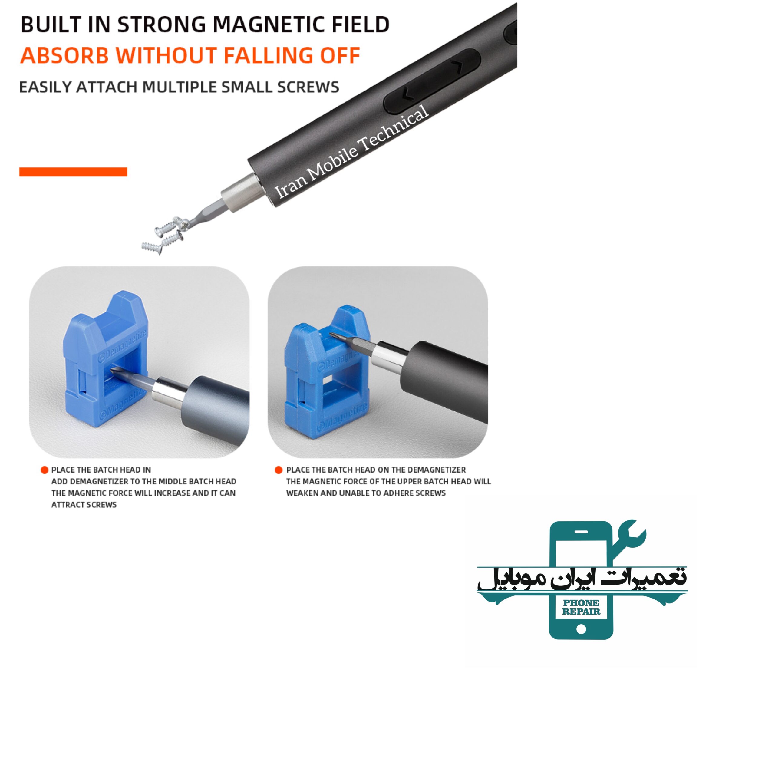 - دارای خاصیت مغناطیسی قوی برای قرار گیری سری پیچ گوشتی بر روی دسته